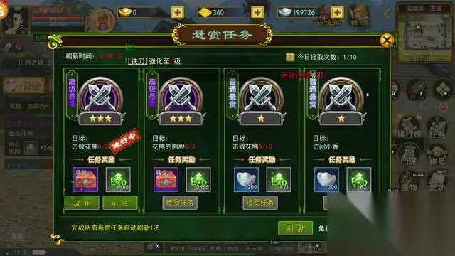 热血江湖手游中的悬赏任务可以说是获得经验、装备、物品等的一条重要途径,是每日必做的日常任务。玩家可以在游戏中的泫勃派主城找到NPC老捕头接取悬赏任务,共分为五个等级:普通任务、中级任务、高级任务、至尊任务还有神级任务。