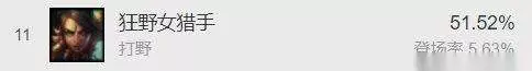 前面已经说过,一个操作复杂的英雄有着非常高的潜力,而因此他们往往不会在胜率排行榜中占据前列,甚至常常有着不到50%的胜率,比如盲僧就是一个很好的例子,他有着46.75%,全部打野英雄倒数第四的胜率,但职业比赛上仍然能偶尔见到盲僧的身影。 由此可见,豹女在白金以上排位的平均胜率能有51.5%,已经是一个相当高的数据了。