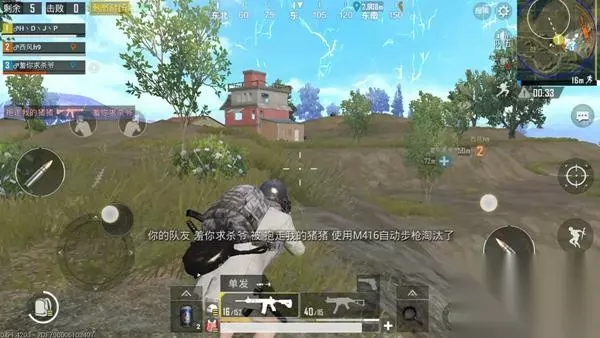 【正面刚枪被击倒】 通常情况下,你的队友在开局时和敌人正面刚枪时被击倒,敌人通常不会立刻击杀他,敌人的第一想法一定是“放长线,吊大鱼”。此刻的你不要慌乱,保持稳定的心态,因为你的队友已经无法逃跑,只能依靠你去战胜敌人。玩家发现敌人后不要立即射击,玩家若想射击必须保证可以直接击杀敌人,否则只会打草惊蛇,加快你队友的成盒速度。 敌人的位置若是过于暴露,玩家可以采取先发制人的战术,但若是敌人的位置过于隐蔽,建议玩家先封烟最好,随后进行火力压制,让倒在地的队友像你的方向爬。因为在和平精英中,玩家的子弹并不会伤害到你自己的队友,只会击中敌人。 队友处于安全位置后,在尝试扶起,若是敌人有进攻的想法,小地图中脚步的印记越来越鲜明,建议先去处理掉敌人,再去救你的队友。