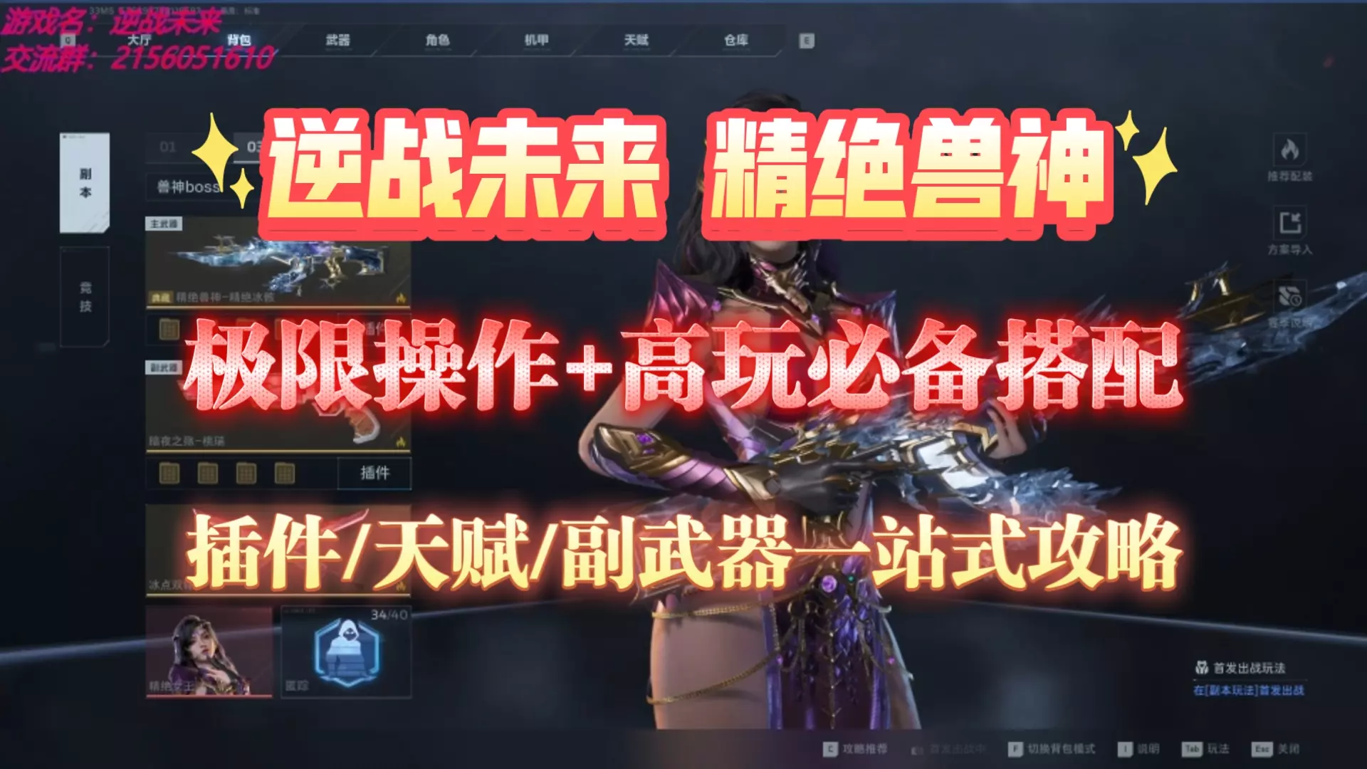 这是FPS游戏《逆战未来》的武器攻略,介绍了精绝兽神的配装思路,搭配致命节拍插件与炼狱双臂技能,能提升该武器的射击与技能伤害,让精绝兽神重回强力武器行列,适合副本作战。