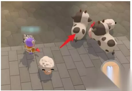 然后靠近奶牛。