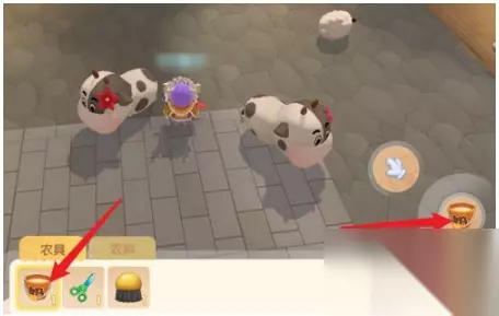 接着先选择挤奶桶,然后点击右侧的图标即可。