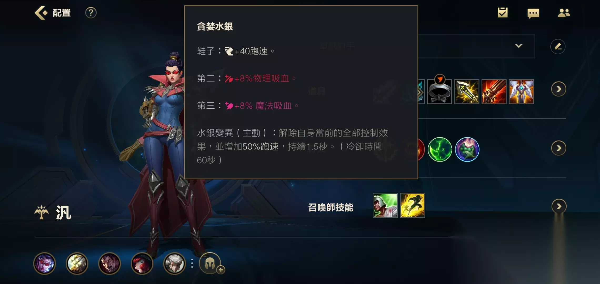 第四件装备我们就出水银,保证自己在团战中可以有着更高的容错率。