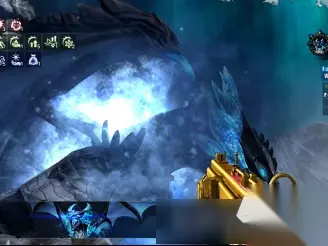 BOSS技能3:寒冰风暴(伤害等级,无视血量秒杀玩家) 屏幕中间出现台词,随后boss将召唤冰陨石对整个地图进行无差别打击,被陨石砸到的玩家无视HP,AC立即死亡。玩家可观察脚下的红色区域进行躲避。 BOSS技能4:冰霜飓风(无伤害,大幅限制玩家行动能力) 屏幕中间出现台词,而后boss起飞并煽动巨大的翅膀,在地图中央形成一个飓风区域。该飓风会吸引玩家至风洞中心,并与迅捷虫配合对玩家造成大量伤害和干扰。可反方向使用shift并持续移动躲避。 BOSS技能5:寒霜吐息(无视血量秒杀玩家) 无台词,在冰霜飓风结束后立即触发,在飓风吹过的区域进行吐息,玩家接触到吐息后HP迅速减少至0并死亡,可在飓风结束后向地图周围移动进行躲避。 BOSS技能6:冰墙连击(对玩家造成持续伤害并击飞玩家) 屏幕中心出现台词,Boss锁定其中一名玩家使用冰墙攻击,冰墙会追踪玩家并造成持续伤害,如果吃到第一个冰墙被击飞,那么将丢失大量生命且被击飞无法使用闪避技能。
