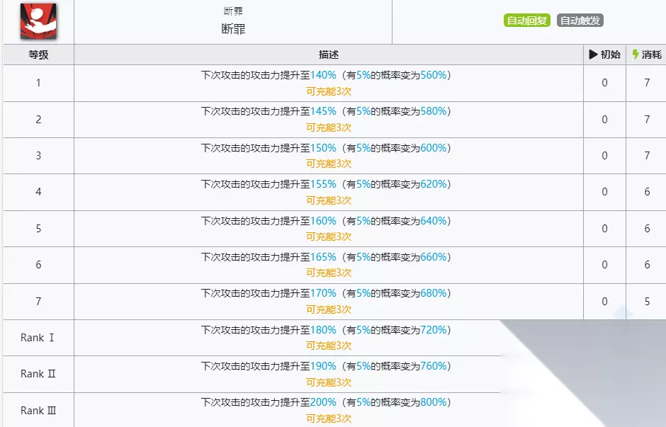 2、一技能:断罪 这个技能可以储存3次,释放技能后下次攻击造成的伤害会提示,并且会有5%的概率会使这次攻击伤害大幅度加强。