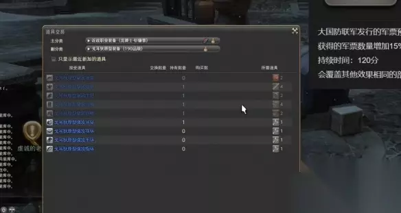 三、解限刷副本 1、若持有【军票预支单】的玩家可以先使用然后去刷一些机制比较简单可快速过的本; 2、刷完后获得一系列的装备可兑换成军票,该方法刷票比较快但是来回交衣服换军票比较麻烦。