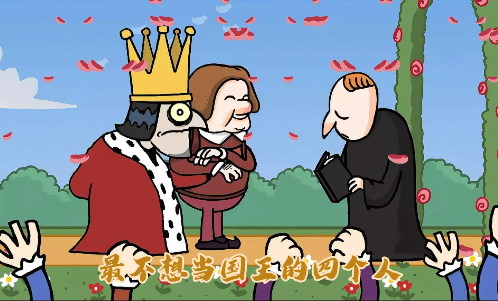 这是一组改编创作的《刺杀国王》搞笑动画截图,主题为“刺杀国王,但是弱水三千”,展示了不同角色刺杀国王、篡夺王位的趣味剧情片段,脑洞清奇十分搞笑。