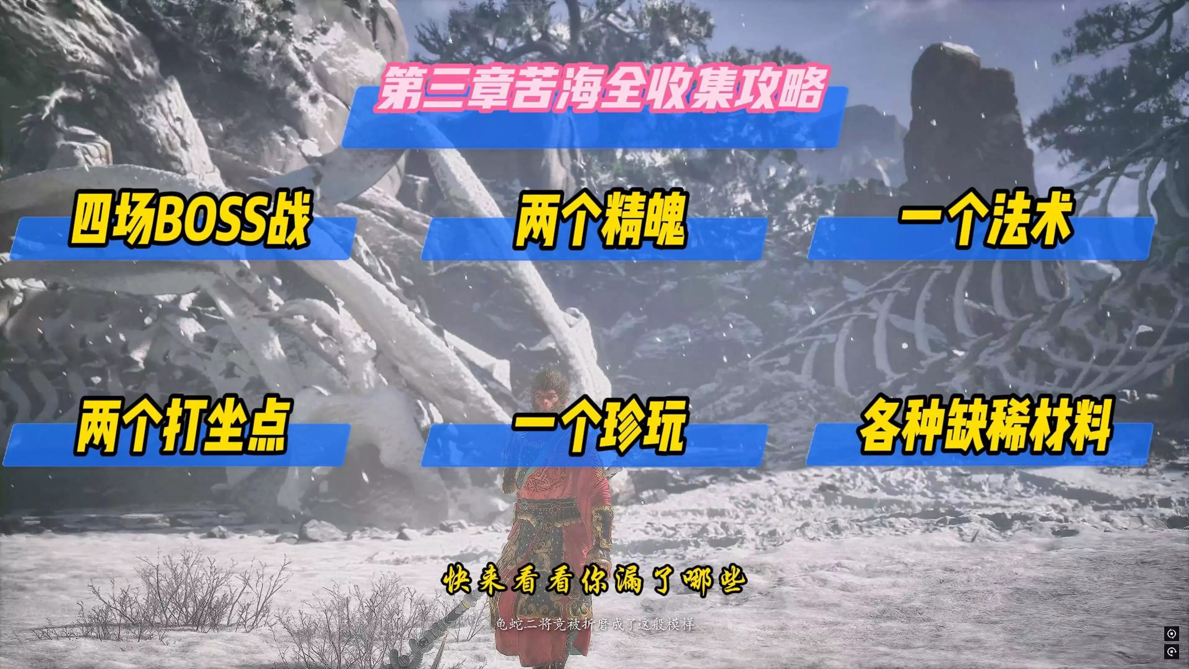 《黑神话悟空》中部分怪物会掉落精魄,想知道各个精魄在哪里能够获得的玩家请看下面“天龙筮”带来的《黑神话悟空》全精魄收集指南,希望能够帮助大家。 背包对照表做不了…