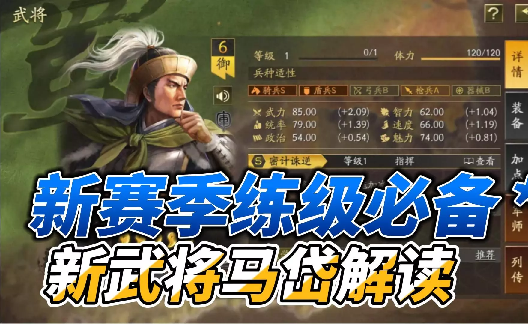 三国志战略版马岱用义心昭烈、鱼鳞阵, 再加上三军、锤炼、统军并加点全统。用“义心昭烈”和马岱搭配有一个原因,那是因为马岱自带战法“密计诛逆”。密计诛逆会在主C造…