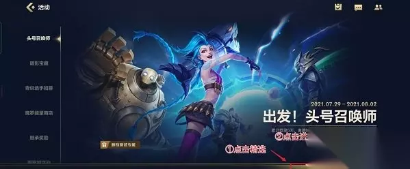 2.选择活动页面底部的【精选】,进入第一个活动【出发!头号召唤师】,跳转到专题页面;