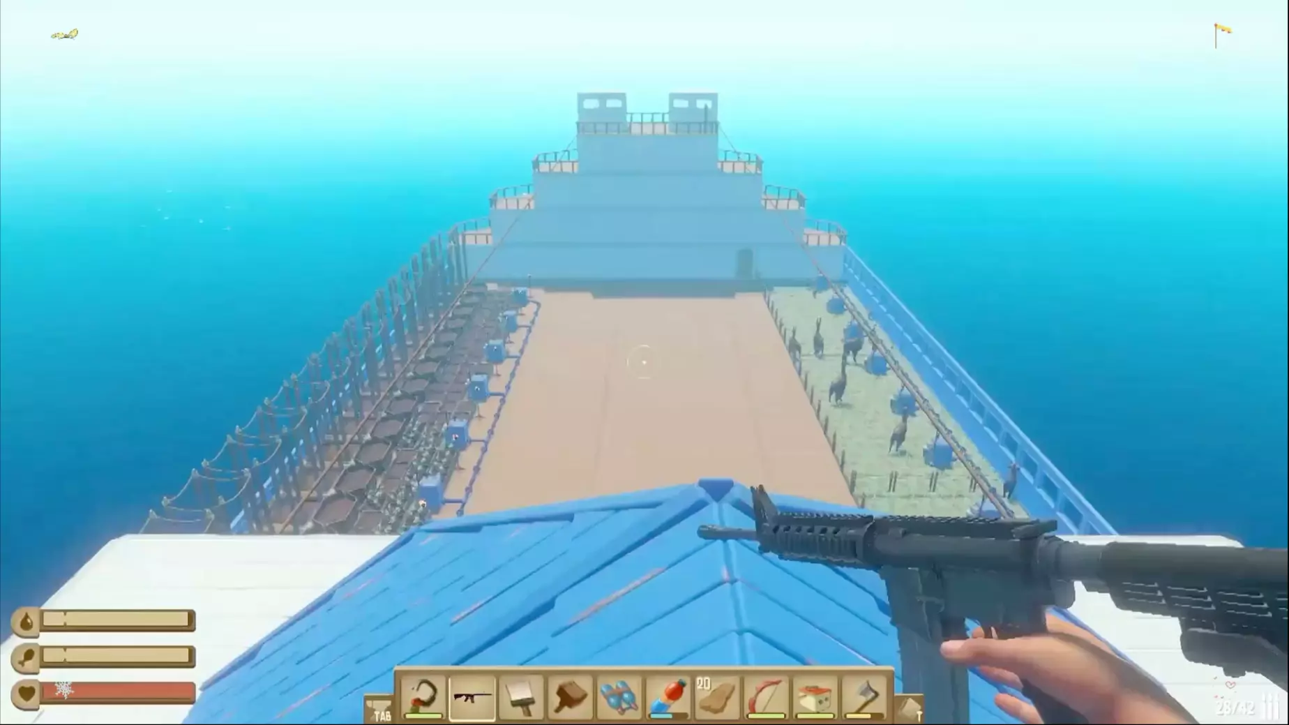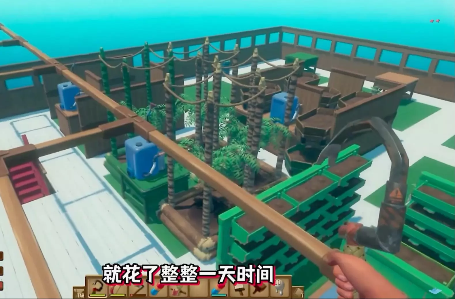 这是生存游戏木筏求生的玩家分享,玩家在游戏中打造出了一艘功能完善、外观好看的木筏,木筏设置了内饰、种植区、养殖区、资源处理区等不同功能区域,一起来看看这个成品木筏吧。