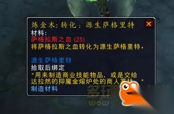 而源生萨格里特是炼金用25个萨血转化