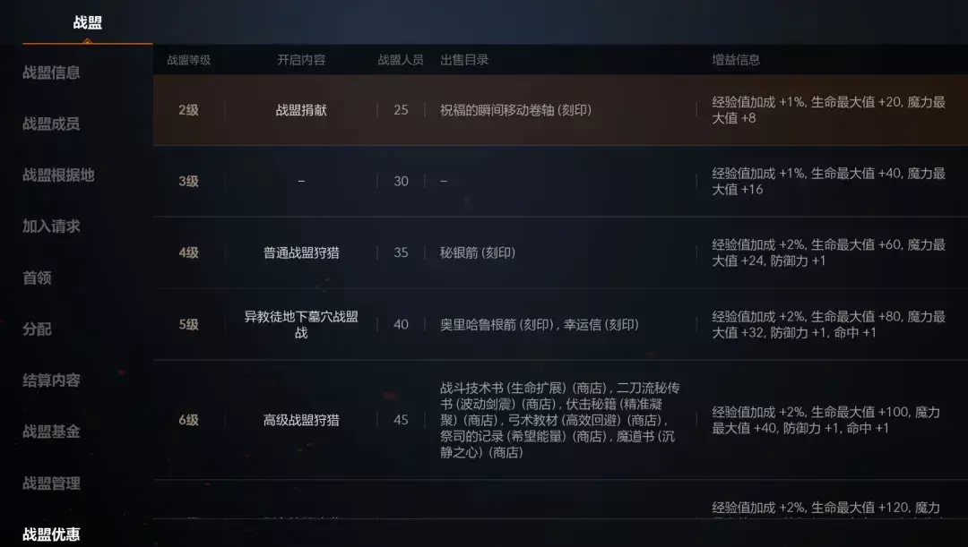提升战盟等级后,所有的战盟成员会获得额外的属性加成!而且战盟等级越高,加成属性越高。