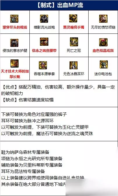 土豪专属套装,通过极高的无色消耗来获得极高的直伤提升,全技能的无色消耗由0~15提升至32~164,非土豪玩家不建议选择。 4、出血MP流(制式武器)