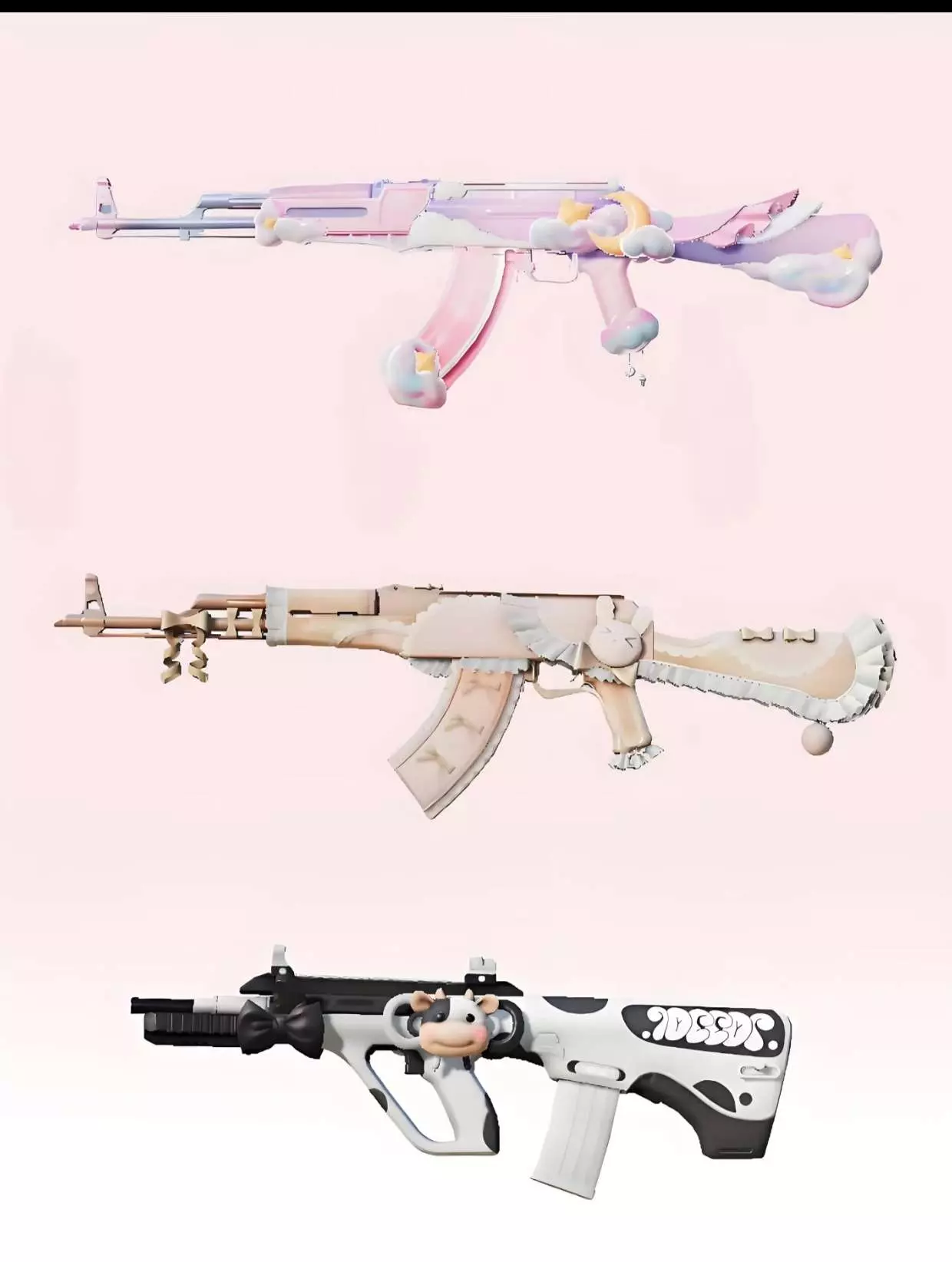 ps:以上所有都是突击步枪哦。每一把都很可爱,由于可爱又好看的突击步枪实在是太多了,我只放了一部分(在图片中)。如果大家还有其他枪皮推荐的,请在评论区留言告诉我哦!我会在后续的制作中根据大家的推荐留言持续发布的!辛苦大家啦![拥抱R][拥抱R]#和平精英 #和平精英新春荣都 #和平精英皮肤 #武器 #和平精英军需 #和平精英枪皮 #和平精英日常 #和平精英中转盘 #和平精英打卡 #和平精英素材