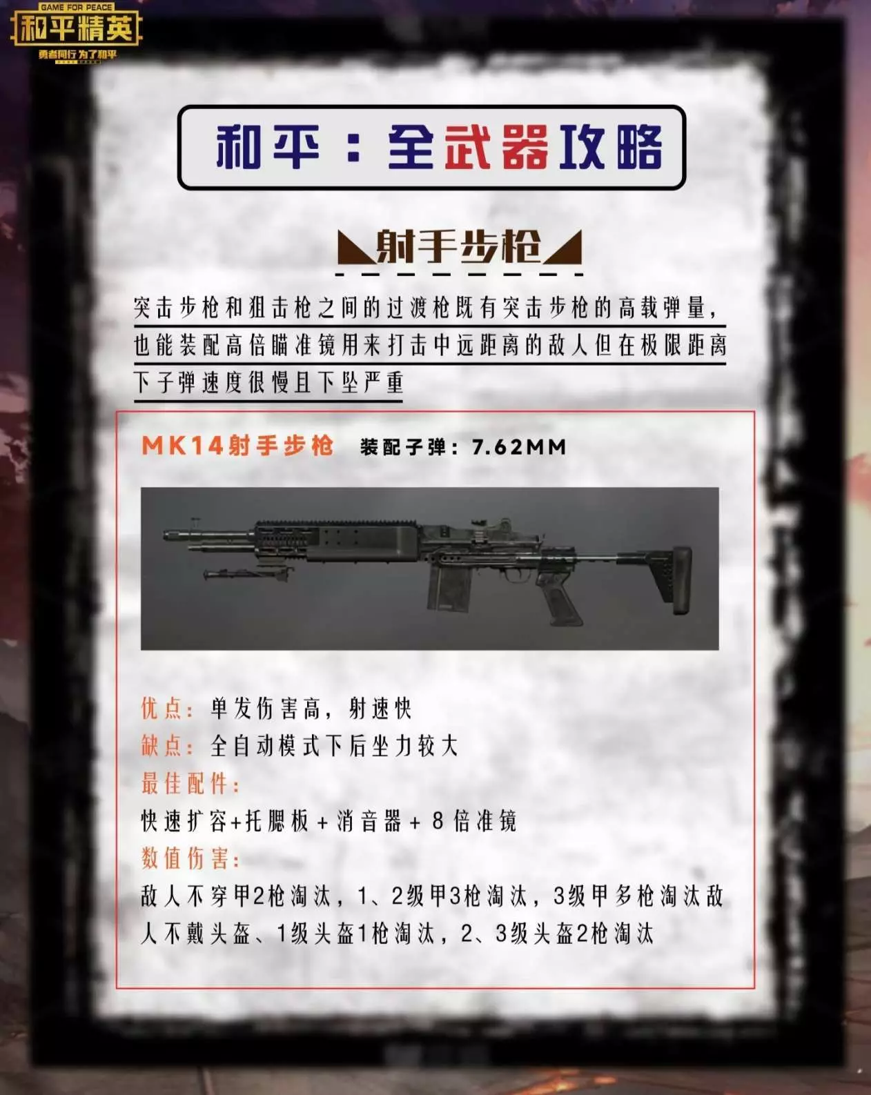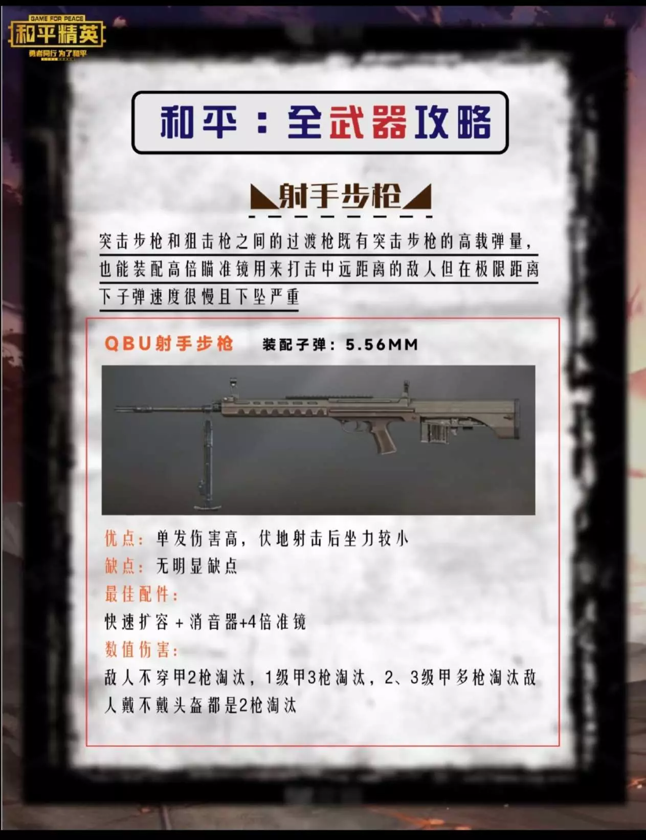 伤害数据:无甲3枪倒,3级头需补枪,中距离对狙神器