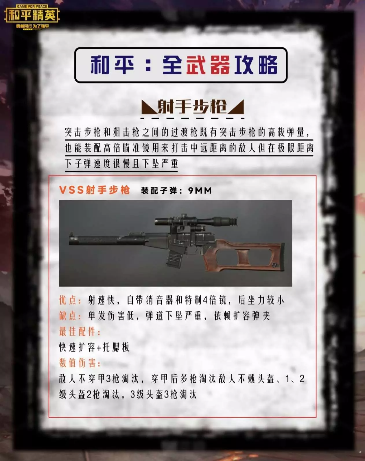 伤害数据:3级头需3枪中近距离偷袭效率Max