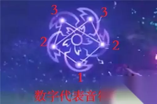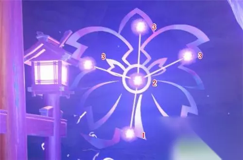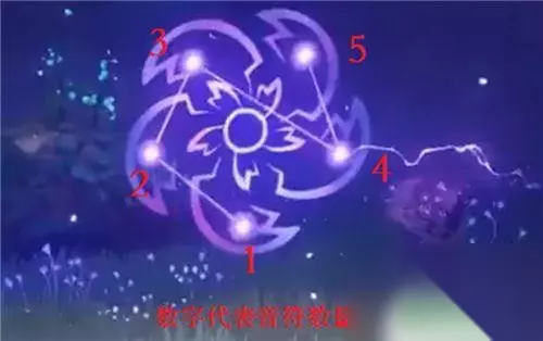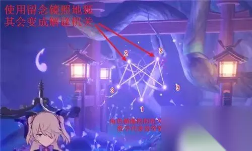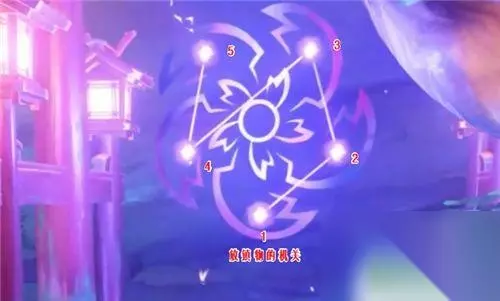 利用雷种子进入结界后,按照下图所示的顺序,利用放镇物的机关,开始进行大祓,即可完成解谜。(PS:数字代表音符的数量,按照下图调整不同机关的音符数量,即可完成任务。)