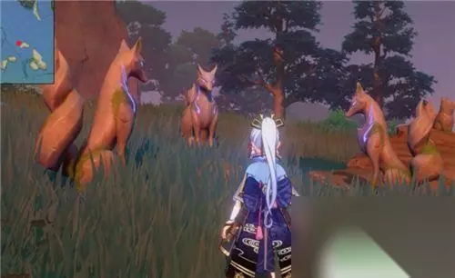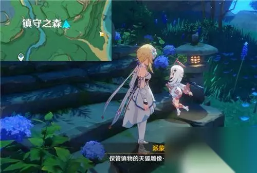 但是镇物却不见了,于是派蒙提议我们回去找花散里问问情况。通过对话,开启任务深林狸囃子,沿着下图的路线一直走,找到五百藏。