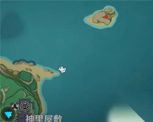 3、神樱大祓神里屋敷之滩涂 神里屋敷触发位置:来到下图的海滩处,通过狐狸神像获得镇物。