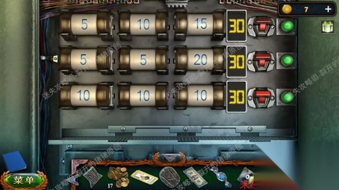 59.抵达二楼后,大家先将左上方摄像头关闭,在右侧石台拿到铭文,把美钞放入左边的售卖机里,通通电,拿到褶子的美钞,点击刮平以后我们再放入售卖机里,闹到苏打水,苏打水加薄荷糖组成甜美炸弹。59.1
