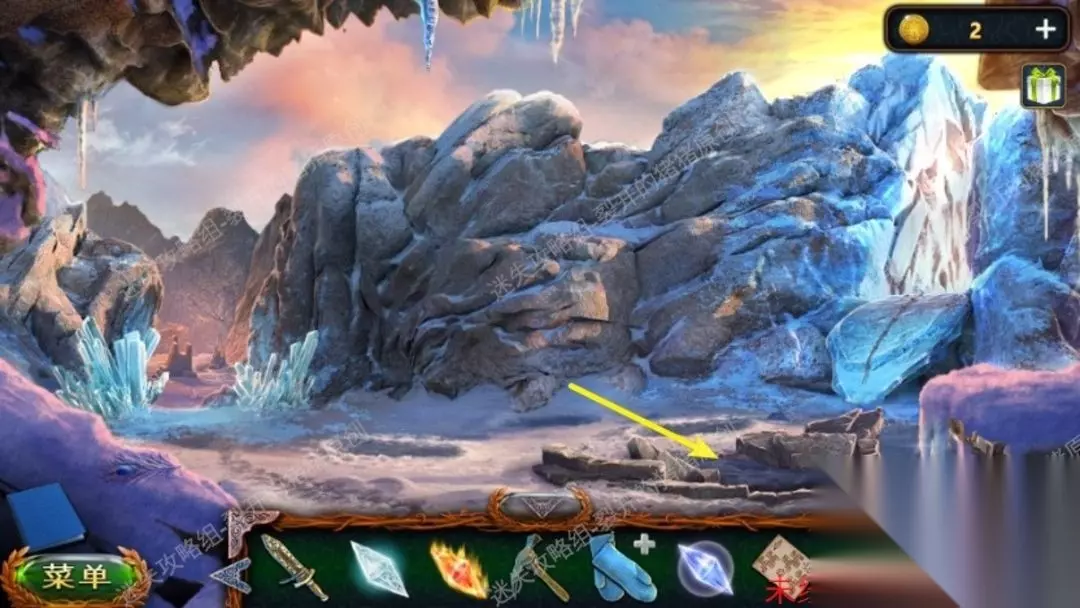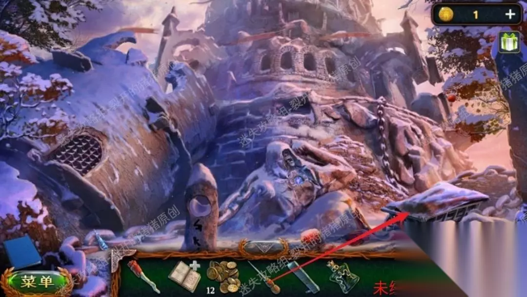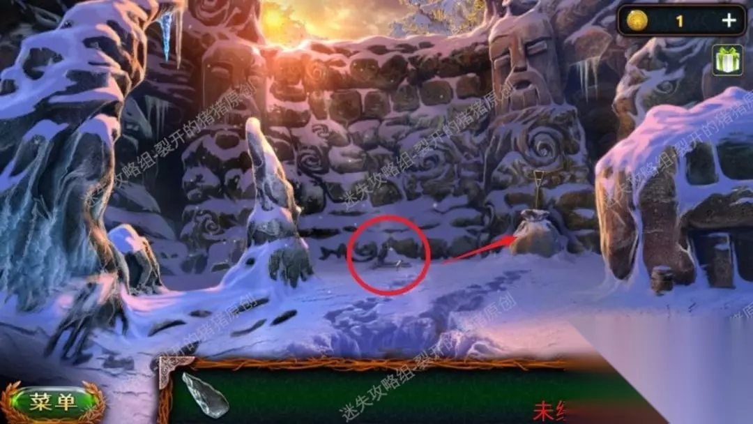 《密室逃脱20巨人追踪》攻略大全 1.这部作品上来就搞得很玄幻,我们将扮演一个考古学家并莫名奇妙传输到天寒地冻中,从地上拿到在梯子旁的锐利的石块,随后用石块划开右侧挂在墙上的布袋,拿到马龙小屋的钥匙及其一把铁铲。1.1
