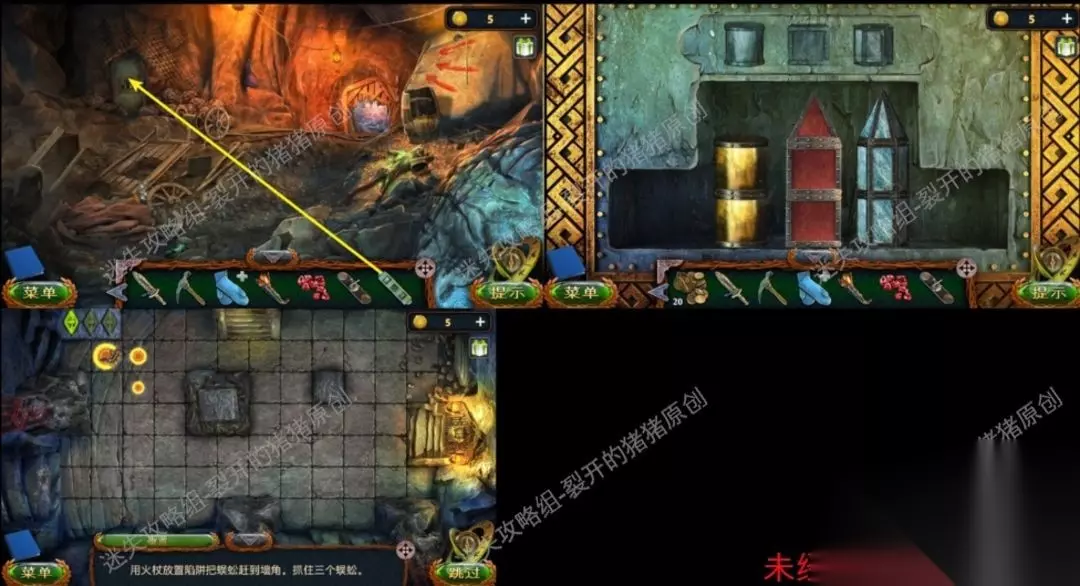 32.到绿色遗体处,我们把提醒板放进门扇中,进行游戏即可进入蜈蚣山洞,用火杖照亮岩洞,进行蜈蚣游戏,我们只需持续点击将蜈蚣逼上角落,结束后拿到一个铭文板。32.132.232.3 >>✅迷途攻略组现在已经制做了很多的游戏图文攻略,较难小游戏还录有视频哦~有需要的话,欢迎各位前去:迷途攻略组公众号看看丫✅<<