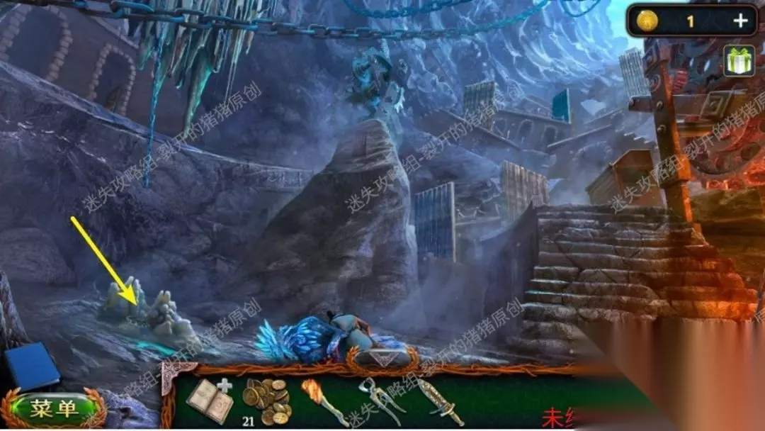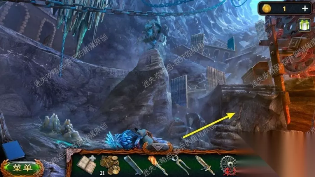20.大家回到峡谷后再用混合酸来溶化铁网,进入里面后会有一个寻物游戏,结束后我们将得到热铁矿,回到地穴中。20.120.220.3