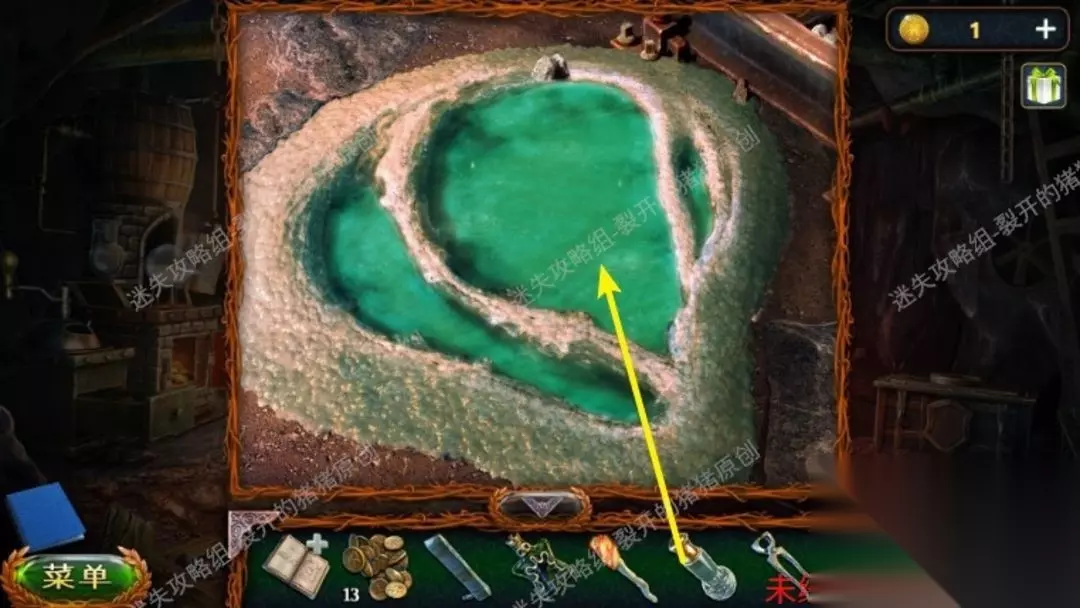 19.在左侧实验台上拿到空罐去石头堆里拿到泪水,在实验台上依据图纸进行混合酸,我们离开岩洞退回到峡谷里。19.1
