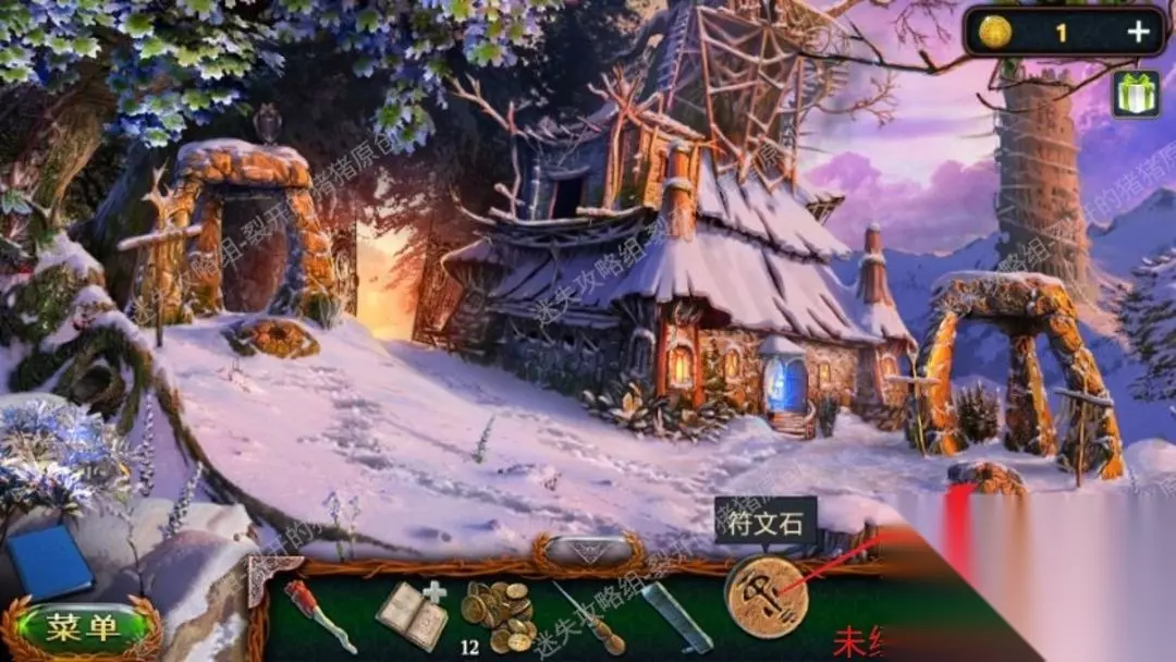 10.我们看到冬瓜房间后,先沿着小路向前走在上方石块处拿到符文石残片,然后点击小屋外边的告示板,拿到锥子,以后叩门进到。10.1