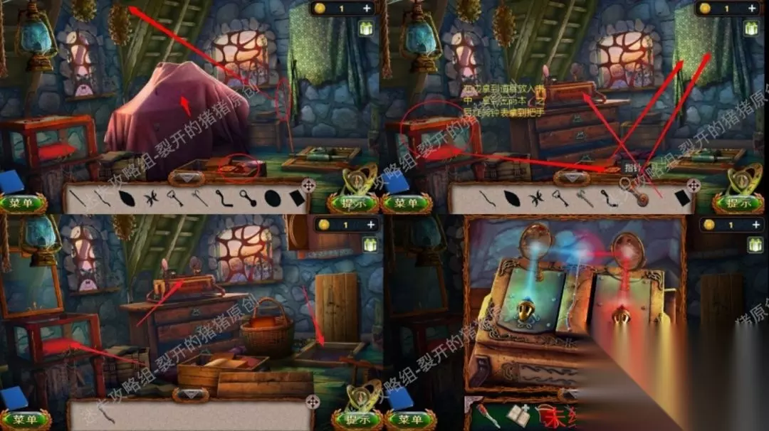 7.在屋子里点击左侧进到,完成一个寻物游戏,把拿到的宝石放进柜子上的仪器,以后给法杖蓄力。7.17.27.3