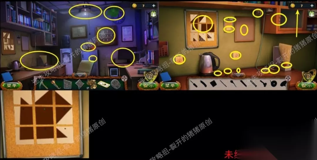 57.赶到办公室后我们先点击挂钟里的摄像头,点击一下桌椅移到风机下,打灯,点击中间保险里的手机,收看剧情后获得信息,打开挂钟中的钥匙箱拿到23号钥匙,在点击左侧的餐桌,进行寻物游戏,见到密码4852,取走便利贴,再换这个密码打开保险箱子,拿到一颗薄荷糖和一张美钞。57.157.257.3