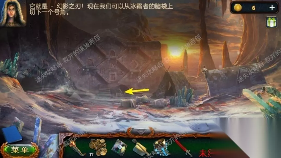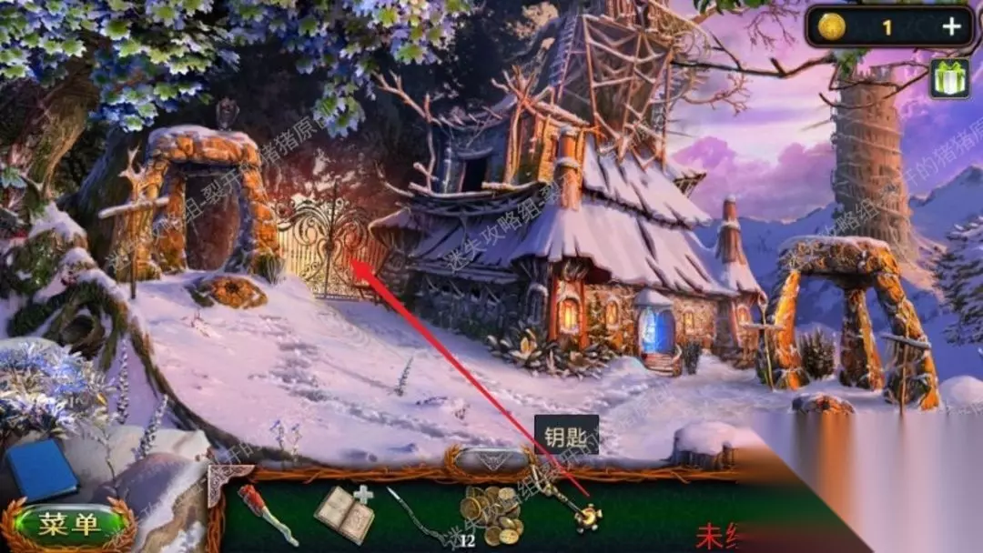 9.记得以前我们在遇到狼的区域冰层下面有一把钥匙,大家用开水溶化冰层拿到锁匙,以后赶到马龙小屋处,开启左边的门。9.1