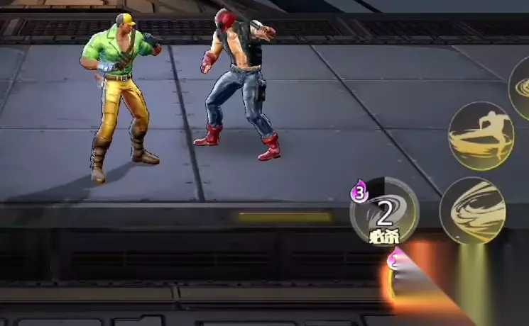 之后在选好人物后便会让玩家们进入到教学关卡,教学关卡的总流程和街机版的第一关是一模一样的。玩家们在这个关卡中碰到的敌人本身实力都很一般,主要就是用来让玩家确认这款游戏的基本操作,关底的BOSS也是街机版第一关的BOSS,玩家们很轻松就能胜利。在教学关卡中,玩家们可以感受到整个游戏不一样的地方,首先是整个游戏的画面和人物建模要精致了许多,同时游戏的打击感也比之前的要优秀不少。 第二点是游戏内玩家操纵的人物本身的技能比以前要增加了一些。同时人物本身的动作也变得更加的流畅。这些不仅仅是我们玩家所操纵的角色,包括敌方的单位也增加了很多动作,所以玩家们在对付敌人的时候需要更加的小心。