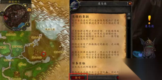 要是还打不了那可能就是网络问题了。 解决方法: 1、玩家可以先检查一下联网状态,可以先将电脑调至飞行模式,然后在联网重启电脑试一下。 2、安装包下载不全。可能是中途断网导致,也可以将魔兽游戏卸载后重新下载。 3、玩家之前的旧版本和新版本造成冲突,需要将旧版本卸载残留清理干净,再重新下载安装。 任务流程步骤: 1、任务接取: 玩家首先需要到索拉查盆地的崩裂碎片,找到NPC莫乌德,进行对话,点击左下角的接受选项,领取“英雄的负担”任务,任务需要玩家杀死残忍的阿图里斯,莫乌德不能陪玩家执行这项任务,因此玩家最好召集其它伙伴帮忙,建议玩家数3人
