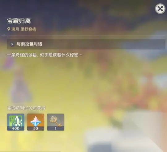 以上为璃月世界任务——宝藏归离攻略的全部内容,感谢各位旅行者观看! 【编辑:233乐园】