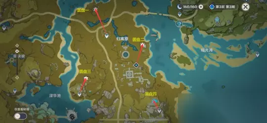 传送到望舒客栈,找索拉雅对话,获取宝藏归离第二阶段任务信息,调查圆盘,一共有四处