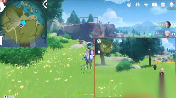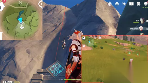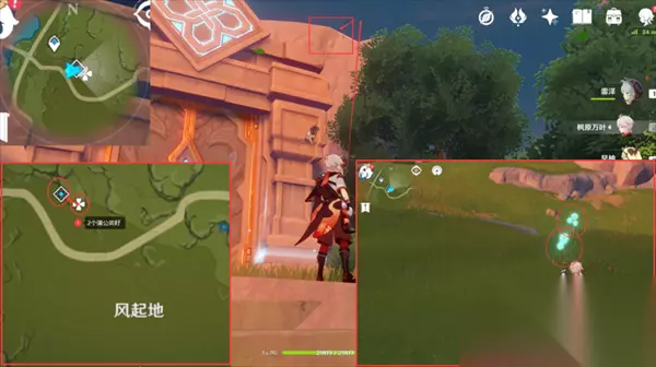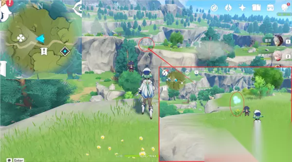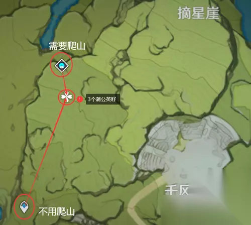 【路线4】2个蒲公英籽 10、我们来到风起地左上角的秘境,朝着地图东方向山体爬上去就能看见两个蒲公英籽;