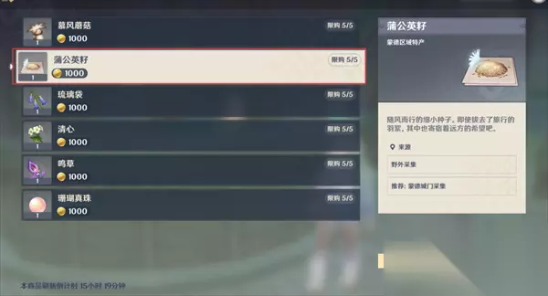 2、1000摩拉/个,72小时一刷新,强烈建议购买;