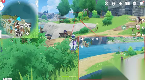 4、拿完朝着地图的东南方向一直走,在钓鱼NPC的旁边就有一个蒲公英籽;