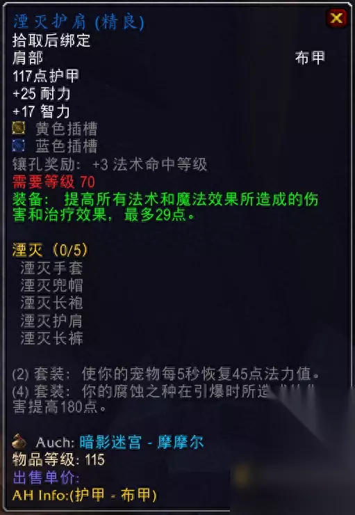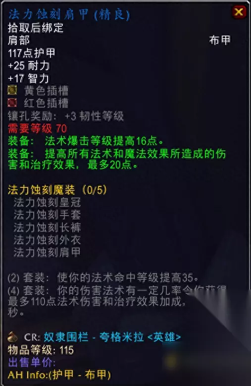 暗影迷宫尾王掉落,所以最好不要组没有肩膀的术士大爷,不然无法入手。 5.法力蚀刻肩甲