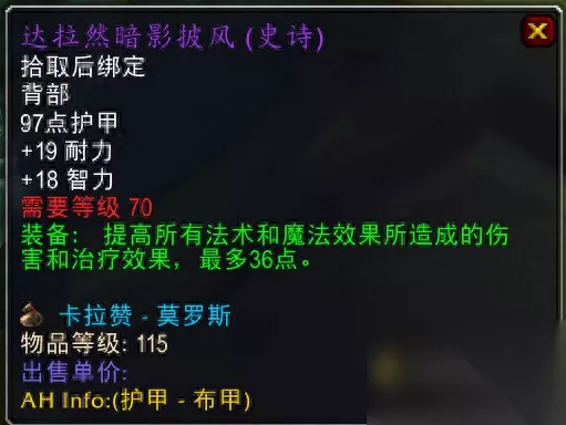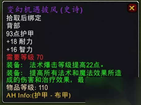 卡拉赞老二掉落 4.变幻机遇披风