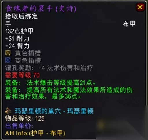 卡拉赞莫罗斯掉落,增加了副属性命中。 3.灵魂窃取项链