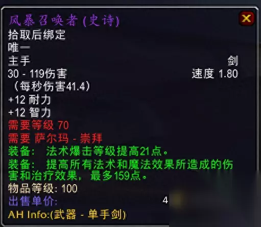 卡拉赞王子掉落,如果没有这把武器,格鲁尔的武器就是天价了。 4.大法师之剑/风暴召唤者