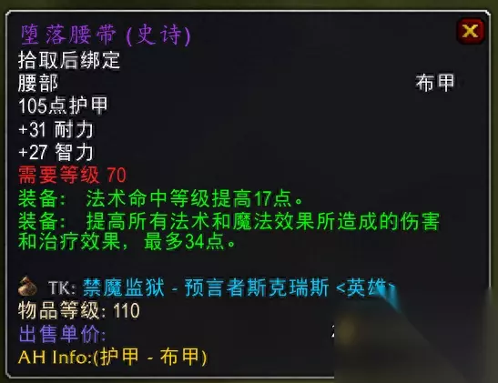 英雄禁魔监狱掉落,因为副本有难度,没必要死磕。 5.煞星束带