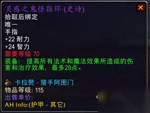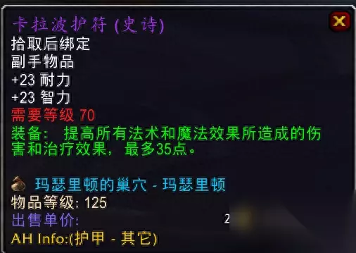 卡拉赞夜之魇掉落,现在召唤的对了,T装备也好了,夜之魇打起来有点墨迹,但是装备还是不错的。 3.卡拉波护符