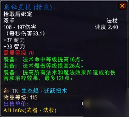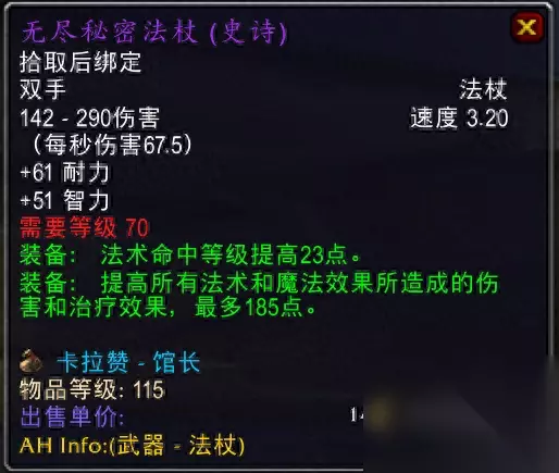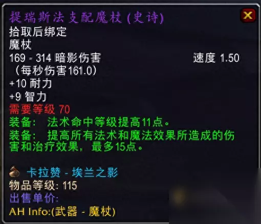 卡拉赞馆长掉落,虽然法伤还不如单手武器,但血高啊,英雄监狱、格鲁尔老一法T,副本AA搞一个也可以啊。 2.泰罗克暗影法杖