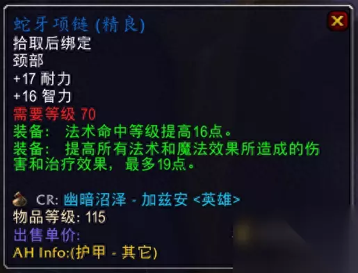 卡拉赞王子掉落,增加了副属性暴击。 4.蛇牙项链
