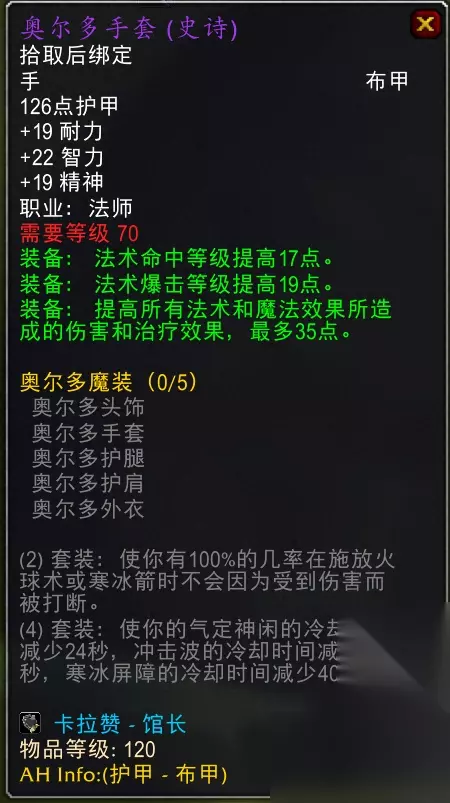 卡拉赞老一,增加了命中属性,双槽。 3.奥尔多手套