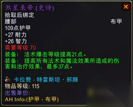 裁缝装备,大佬直接拍卖行购买 3.神圣灵感腰带